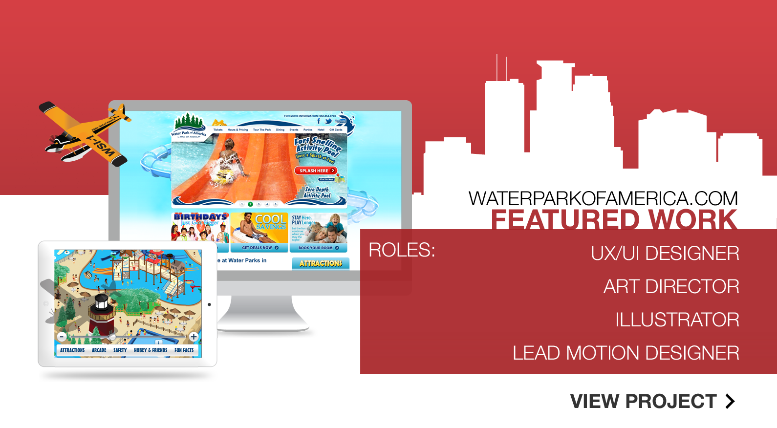 Water Park of America (WPOA) was tired of their boring site which only had a couple of images of the park and some directions. I took the lead in creating a new web site that has a user experience that no one would soon forget. By designing an interactive map that looks beautiful on both your iPad and desktop computer we really brought the WPOA experience into the homes of thousands.